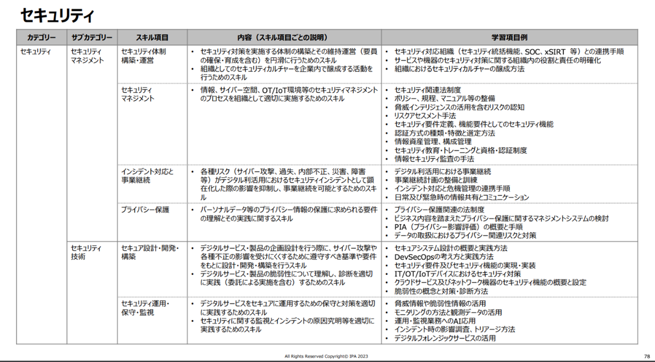 出典:https://www.ipa.go.jp/jinzai/skill-standard/dss/ps6vr700000083ki-att/000106872.pdf