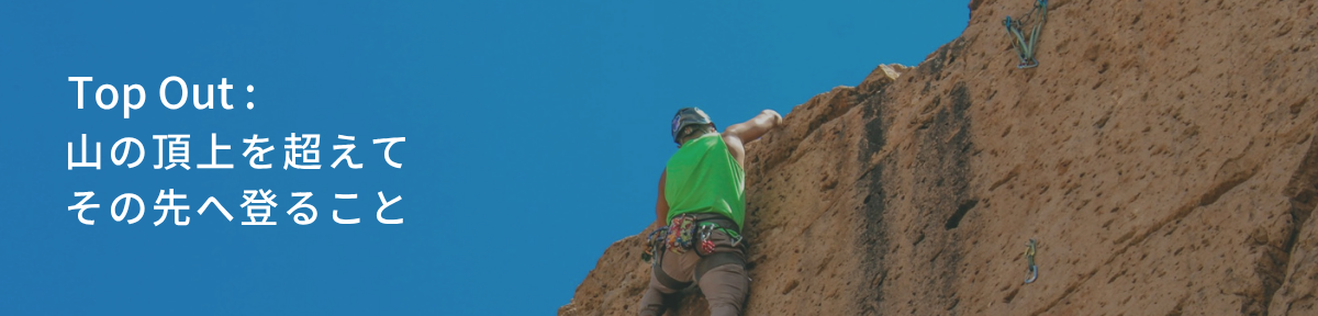 「頂点を目指し続け、その先へと成長し続ける受講者の皆様をサポートする」という意味を込めて、クライミング用語である「Top Out」を社名に採用しました。